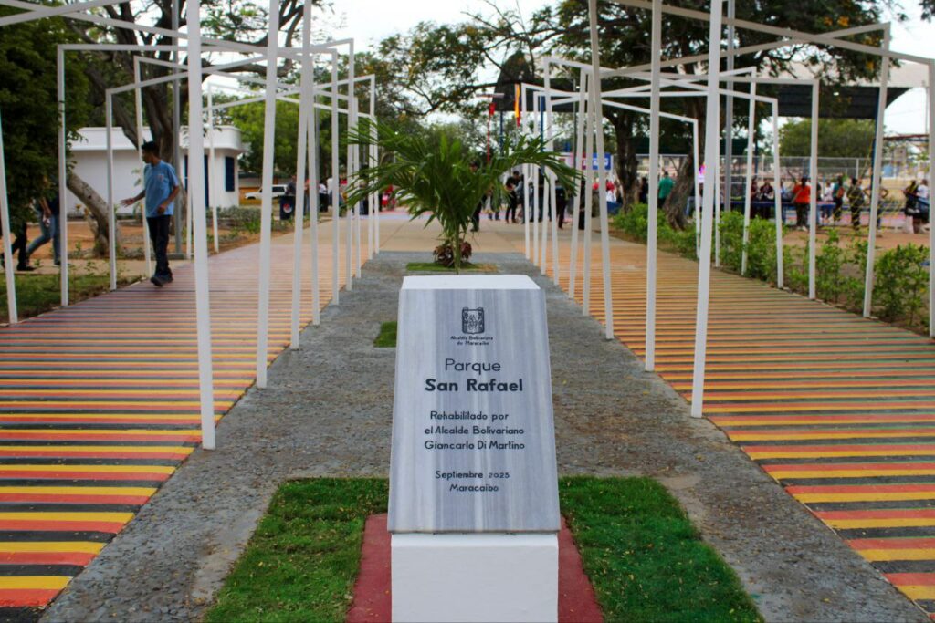 Maracaibo, 2 de octubre de 2025.- La Alcaldía Bolivariana de Maracaibo, en un trabajo conjunto del Servicio Desconcentrado de Plazas y Parques (SEDEPAR) y el Instituto Municipal del Ambiente (IMA), entregó la tarde de este jueves las plazas San Rafael, Luis Hómez y Paul Harris completamente rehabilitadas para el disfrute de las familias en distintas parroquias de la ciudad.