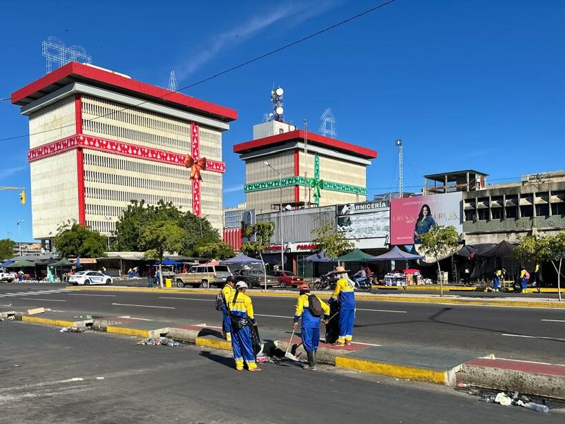 Maracaibo, 25 de diciembre de 2025.- Con más de 300 hombres y mujeres del barrido manual y de recolección de desechos sólidos de los institutos municipales de Ambiente (IMA) e Instituto Municipal de Aseo Urbano (Imau), así como de la empresa privada Fospuca, la Alcaldía Bolivariana de Maracaibo realizó el tradicional operativo de limpieza del casco central, este jueves 25 de diciembre, luego de las compras de última hora con motivo a la Nochebuena por la llegada del Niño Dios, recolectando 150 toneladas de basura.