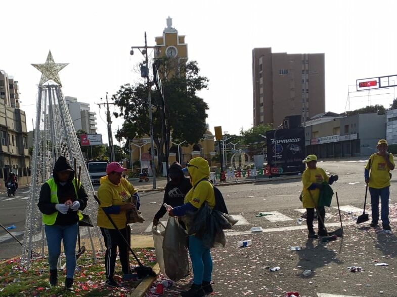 Maracaibo, 8 de noviembre de 2025.- Más de 300 hombres y mujeres ambientalistas fueron distribuidos en Bella Vista y 5 de Julio desde la madrugada del sábado 7 noviembre tras la actividad del Encendido de Luces de Bella Vista, con la finalidad de dejar limpia las calles y avenidas donde se realizaron los espectáculos públicos.